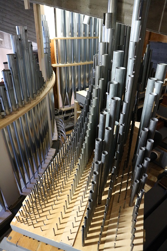 FACCIATA: Composta da 116 canne in zinco lucidato di cui 57 relative al Grand’organo e 59 relative all’Espressivo.