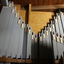 MANTICERIA: Lo strumento è alimentato da 4 grandi mantici del tipo a vasca, 2 per ogni corpo d’organo.